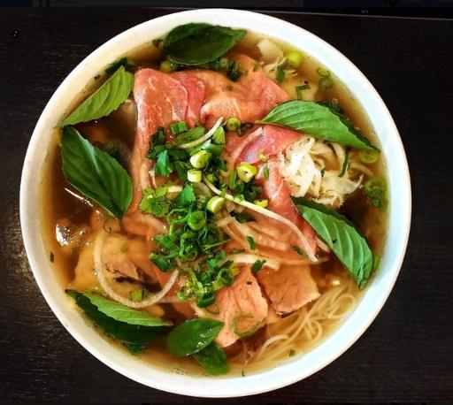 Pho with eye round steak. All Noodle soups served with bean sprouts, lime/lemon, jalapenos, basil and cilantro